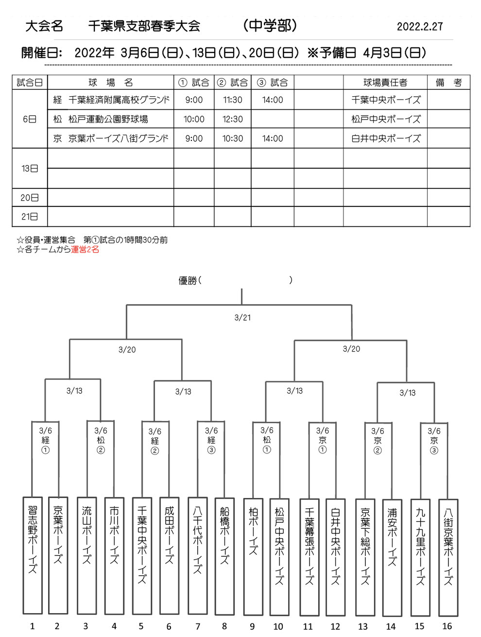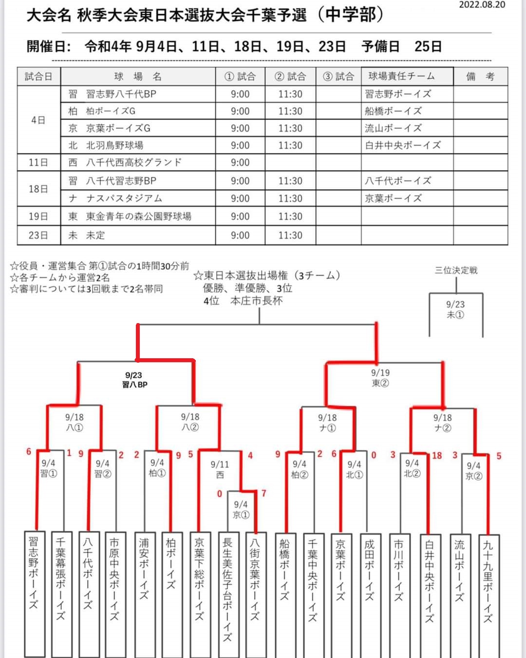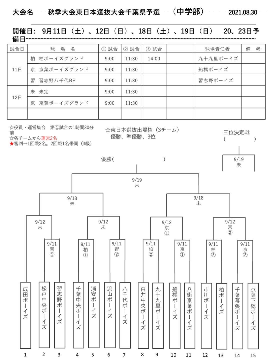 秋季大会東日本選抜大会千葉予選が始まります。