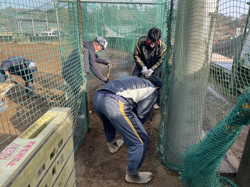 グランドの補修(パレット埋め込み)作業を実施しました。